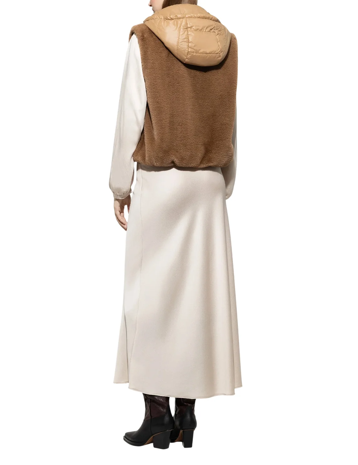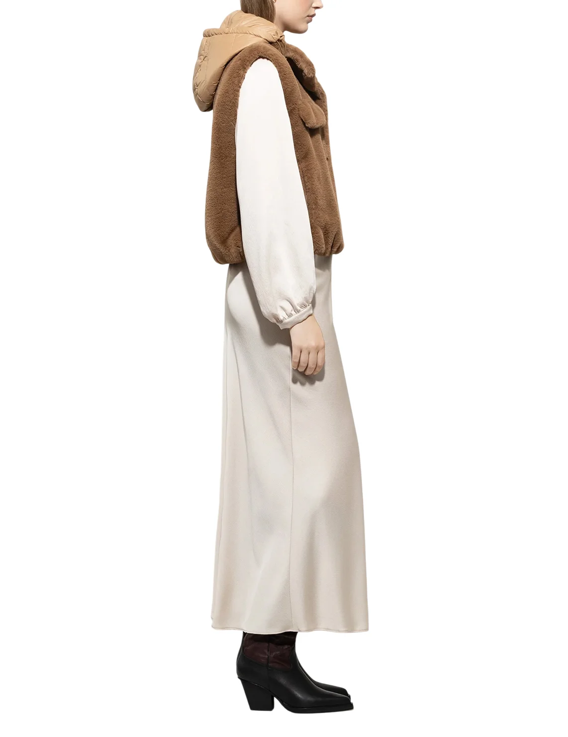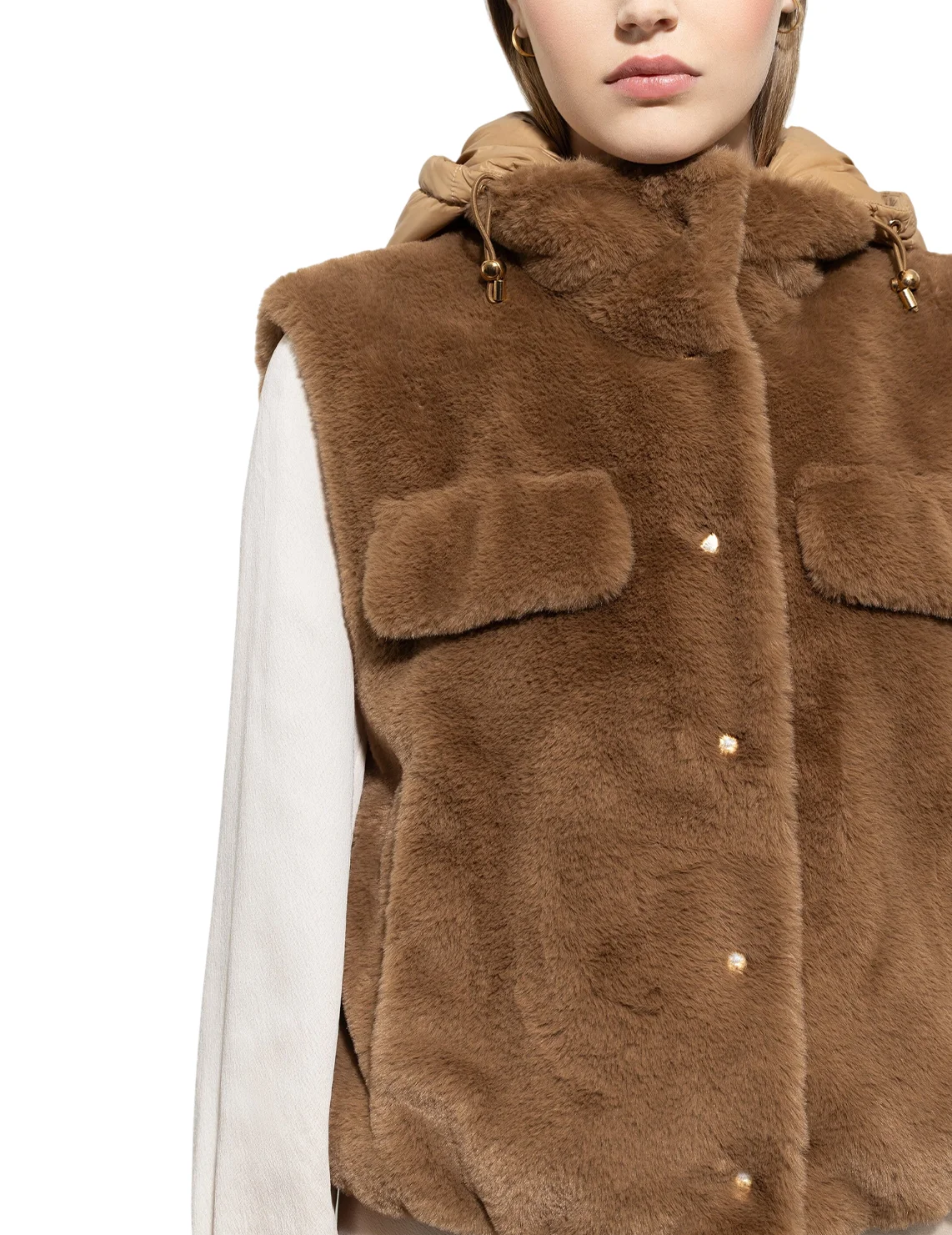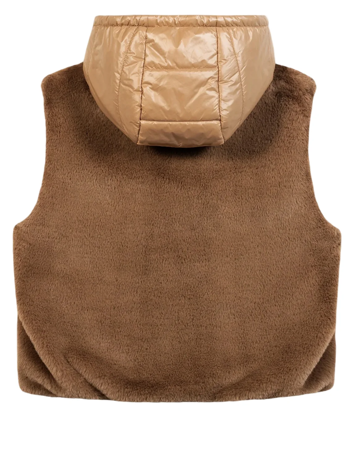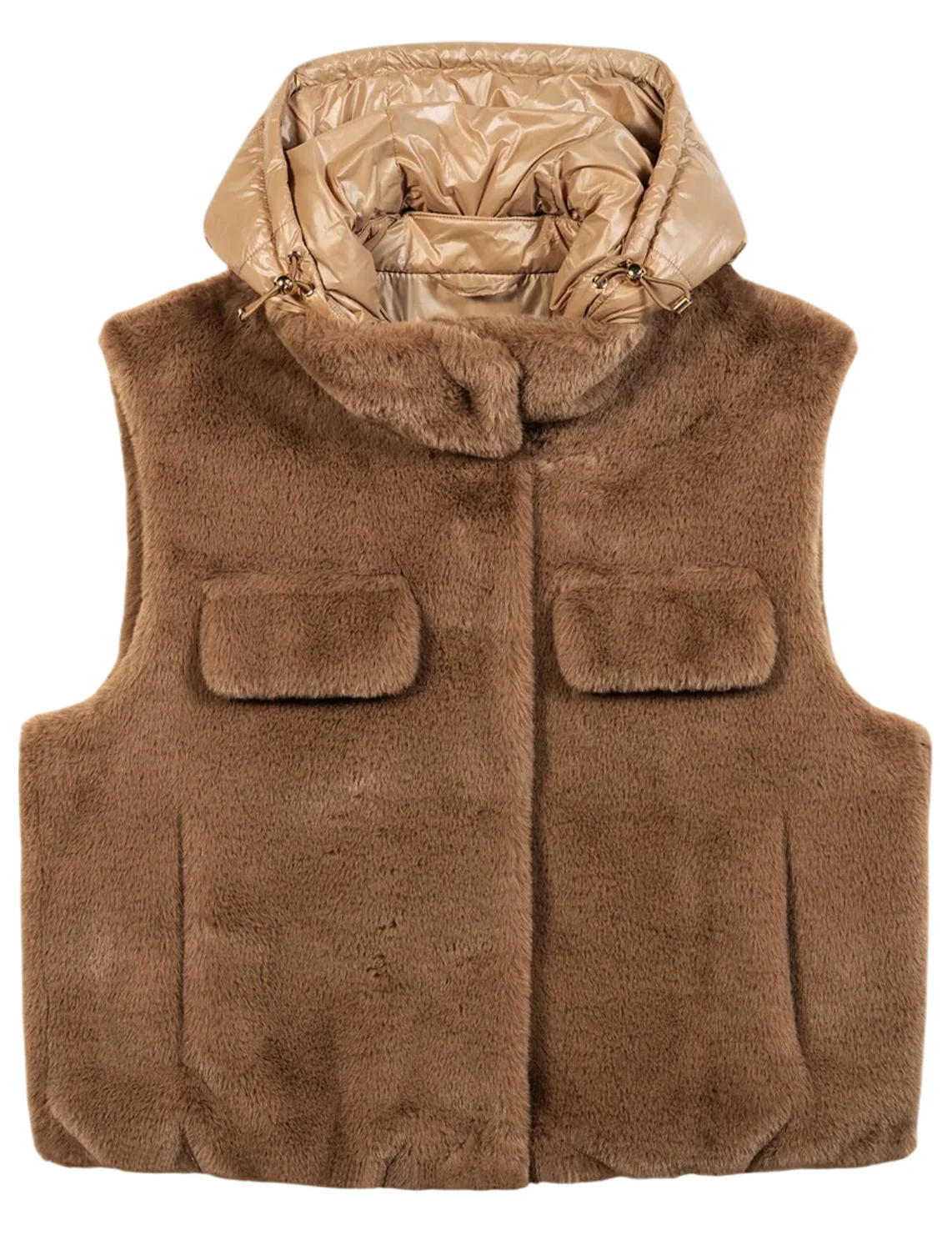 Жилет виготовлений зі 100% поліестеру, підкладка з поліаміду. Модель прямого крою. Має капюшон з куліскою, нагрудні кишені з клапанами, застібку на кнопках та прорізні бічні кишені.