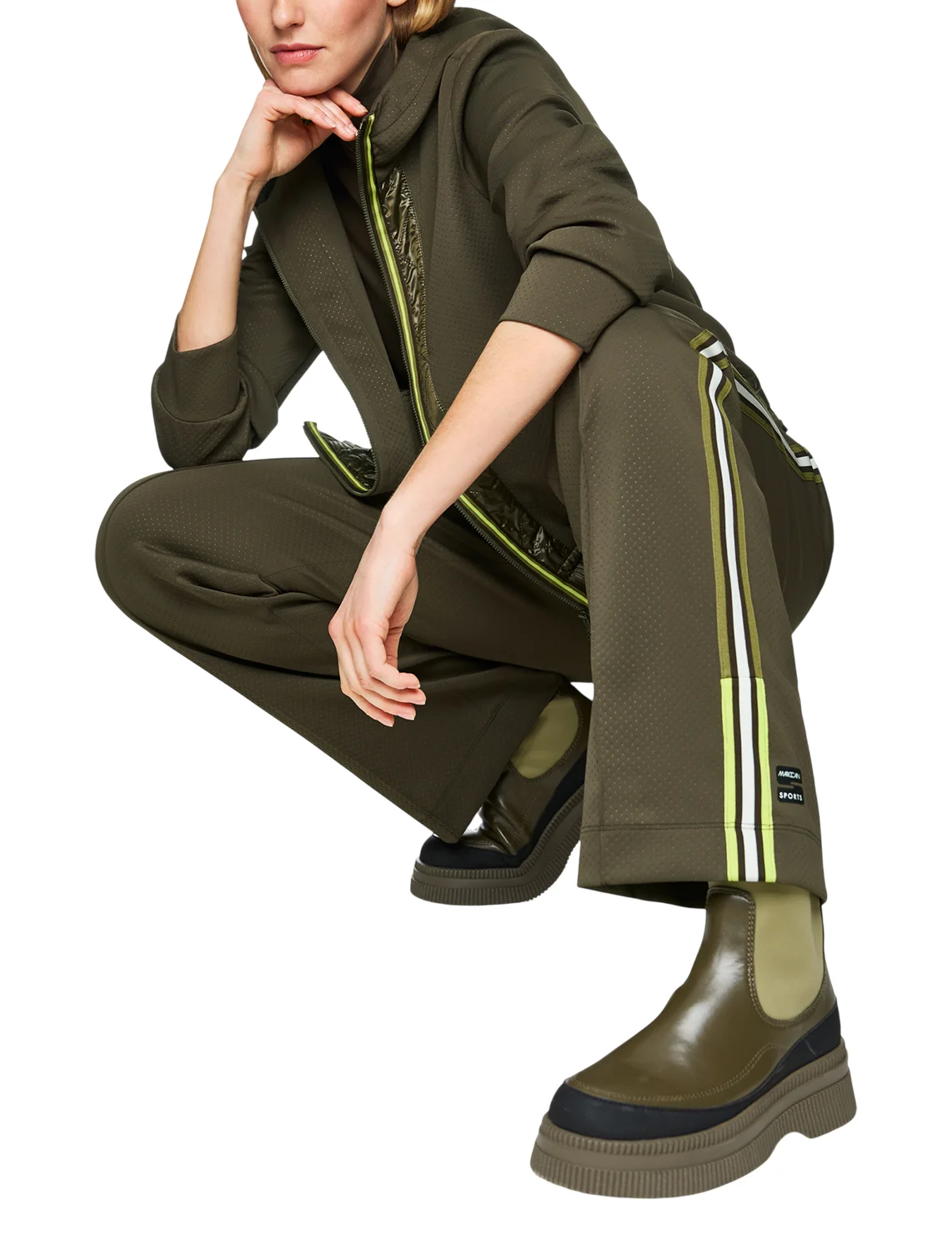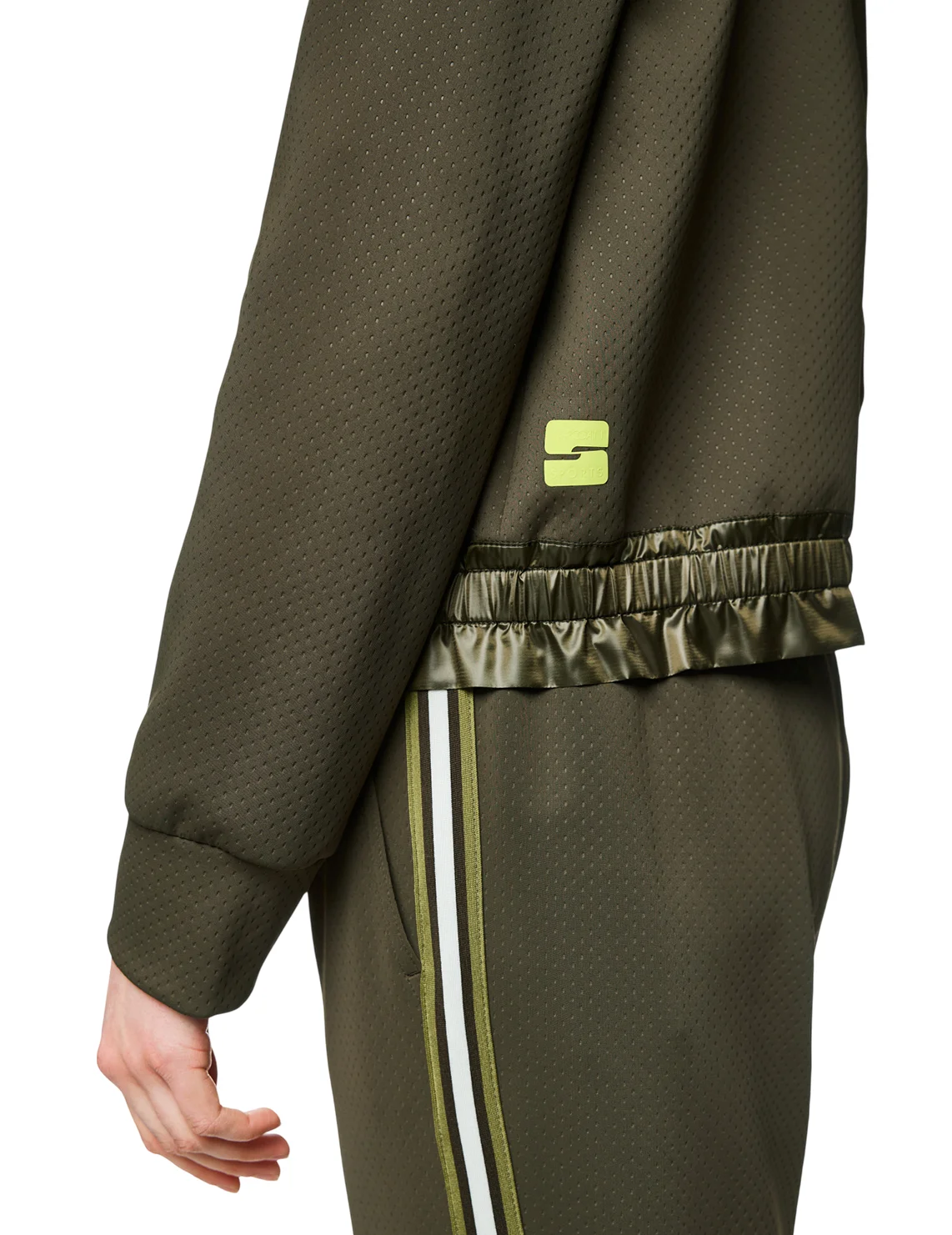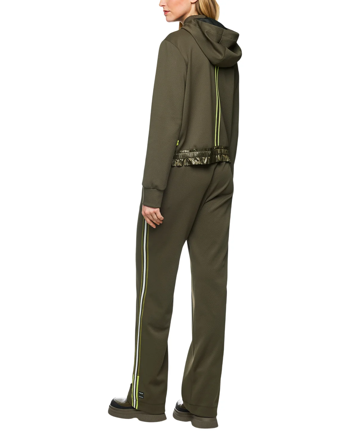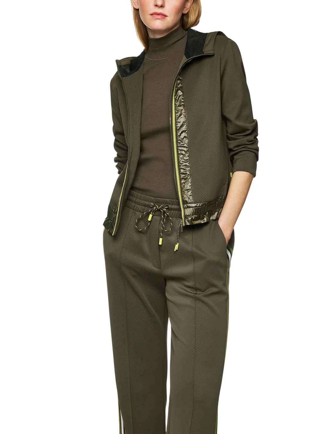 Зіп-худі виготовлено з поліестеру та еластану. Модель виконана в прямому крої. Має комір-стійку, капюшон, двосторонню застібку-блискавку, прорізні кишені та довгі рукави з манжетами. Декоровано контрастними смужками.