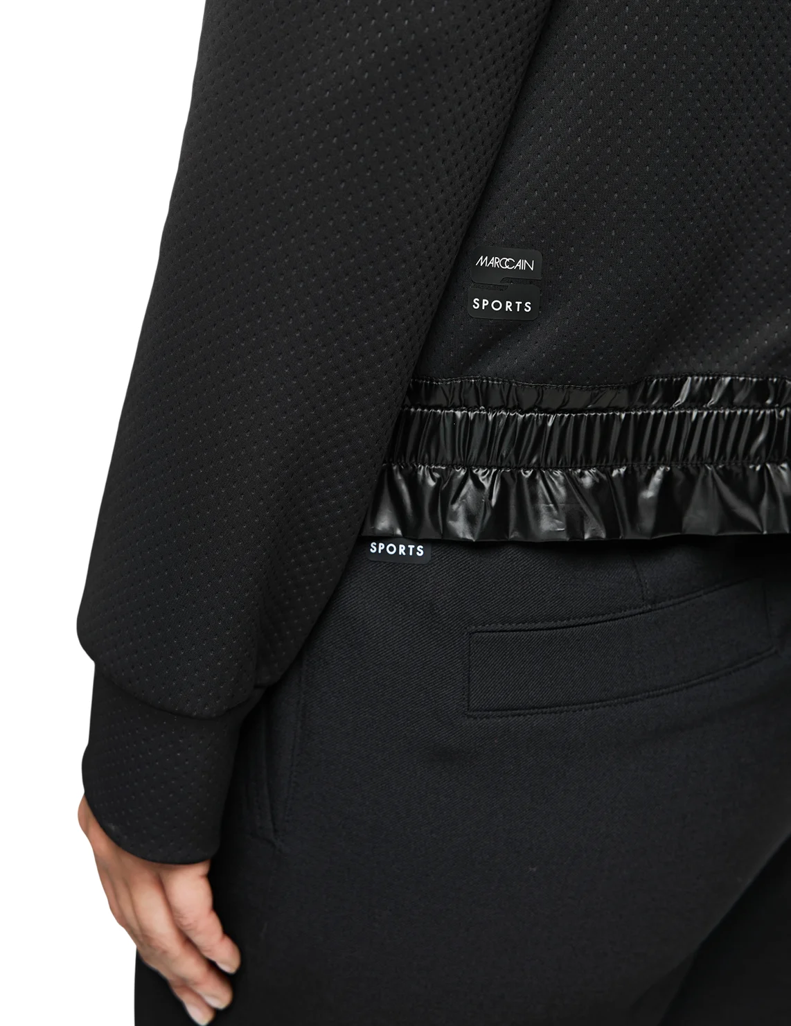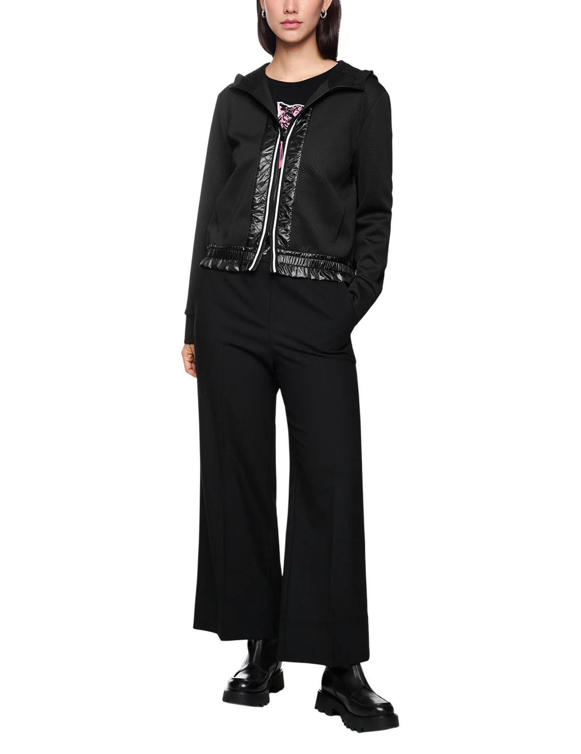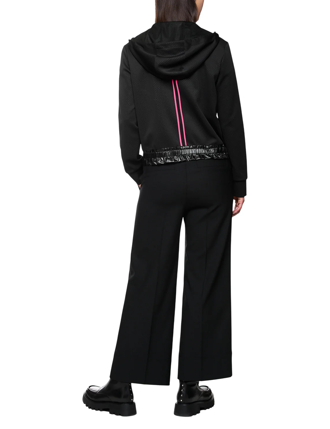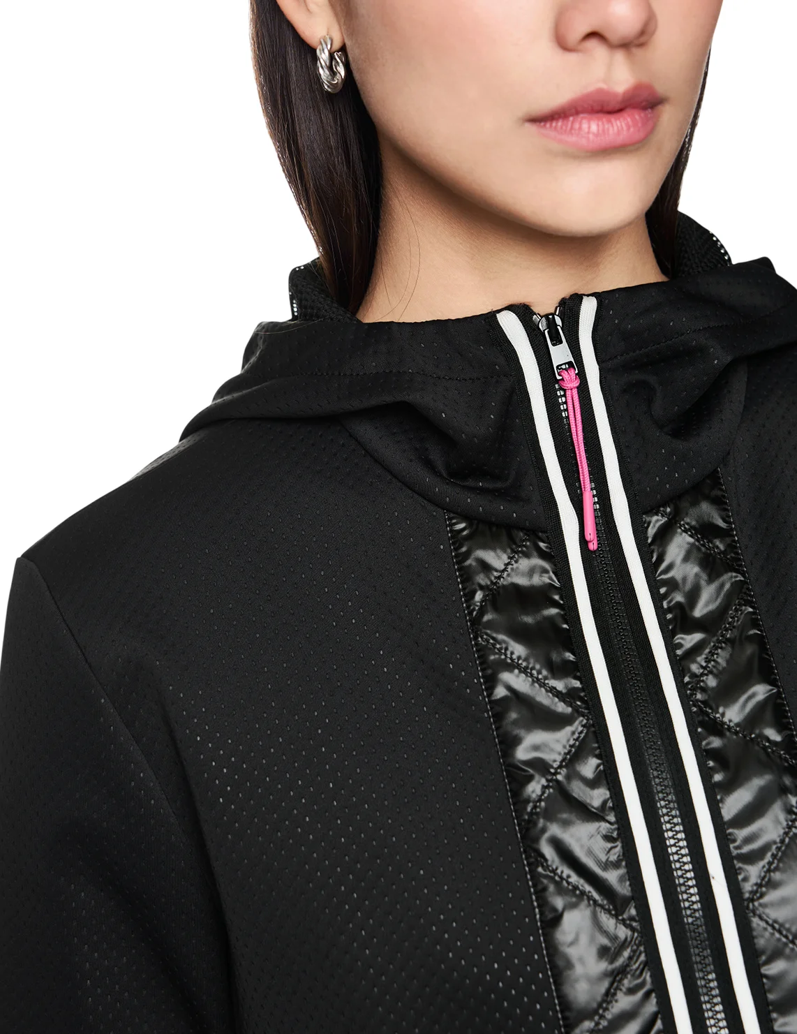 Зіп-худі виготовлено з поліестеру та еластану. Модель виконана в прямому крої. Має комір-стійку, капюшон, двосторонню застібку-блискавку, прорізні кишені та довгі рукави з манжетами. Декоровано контрастними смужками.