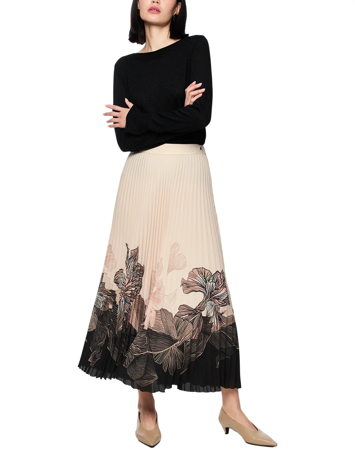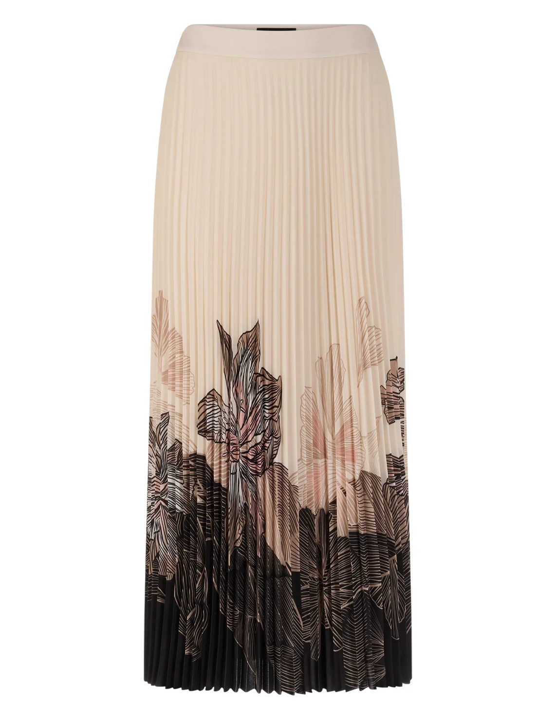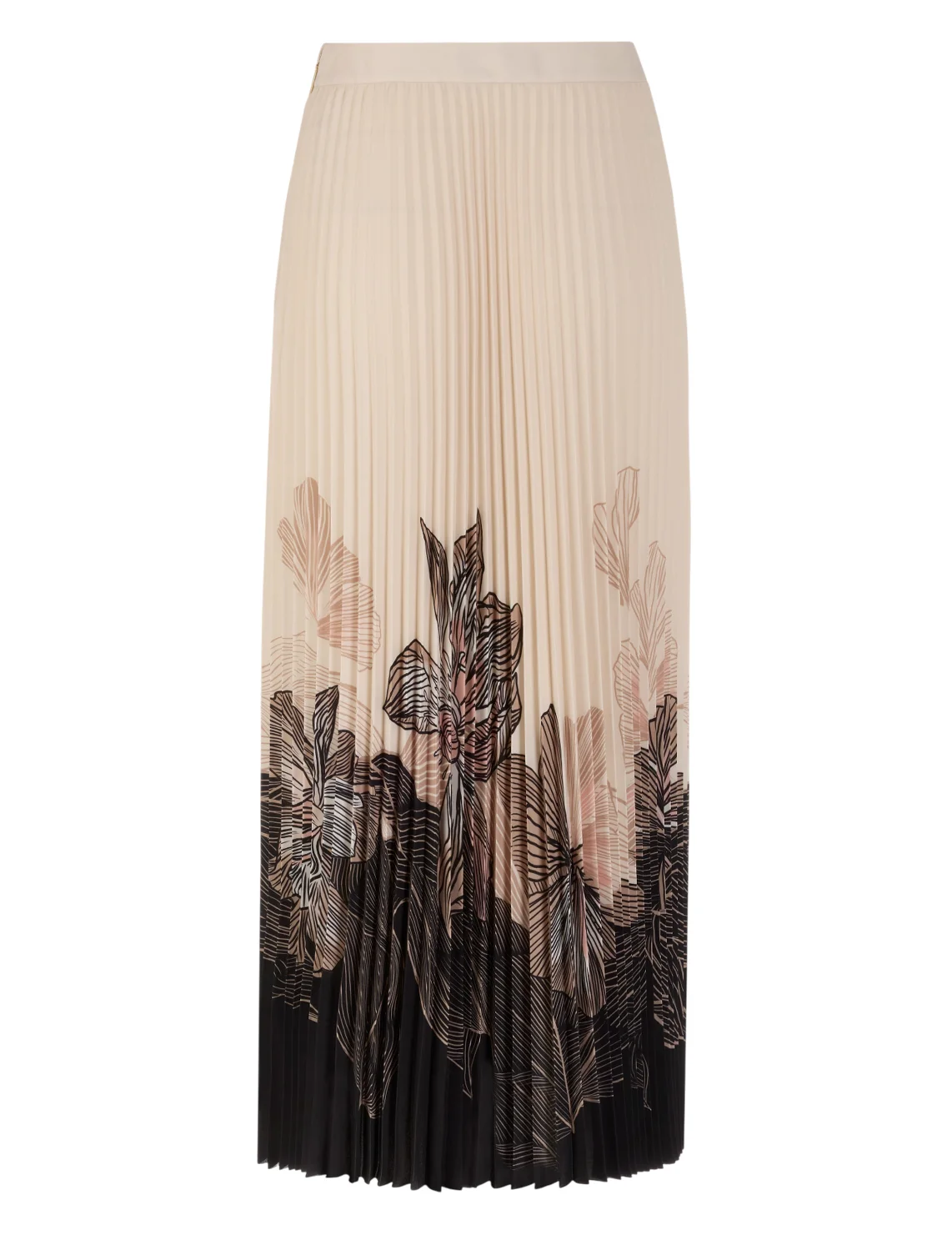 Юбка изготовлена из 100% полиэстера, подкладка из полиэстера. Модель длины миди выполнена в расклешенном крое. Имеет плиссировку и застежку на молнии сбоку. Декорирована цветочным принтом.