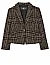 Жакет изготовлен из шерсти, полиэстера, полиакрила и полиамида. Модель прямого кроя. Имеет отложной воротник с лацканами, декоративные клапаны, застежку на пуговицах и длинные рукава. Декорирован принтом в клетку и бахромой по краям.
