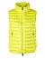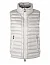 Жилет изготовлен из полиэстера и полиамида, наполнитель - пух, перо. Модель прямого кроя. Имеет воротник-стойку, два прорезных кармана на молнии и двустороннюю застежку-молнию.